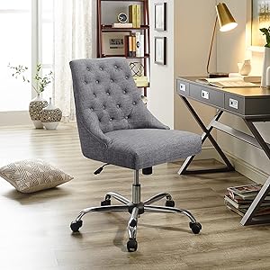 【Line Material】The desk chair is made of high quality linen fabric with simplicity and thickly padded, button cluster back. Thick padded seat and contour back cushion for comfort using