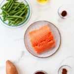 Salmon: Fattier cuts (aka not wild or sockeye) will work best here for texture and flavor. I find it easiest to buy pre-cut filets to save time and ensure everything is evenly cooked.
