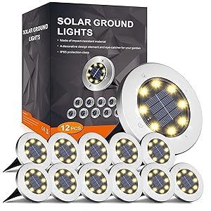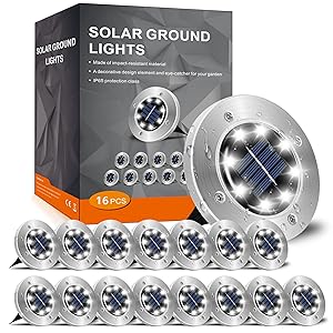 INCX Solar Ground Lights, 16 Packs 8 LED Garden Lights Solar Powered,Disk Lights Waterproof In-Ground Outdoor Landscape…