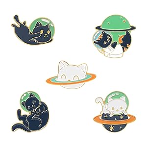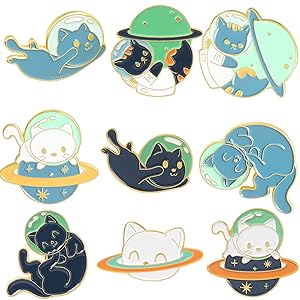 Quality Material:Enamel lapel pin made of alloy and environmental friendly enamel painted coating.Space cat pin pack is alloy material,nickel free eco-friend alloy.A gold button for a secure fit, for easy to wear, lightweight enamel pins.Not allergy for your skin.