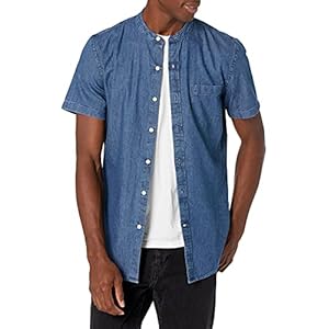 Goodthreads Men’s Slim-Fit Short-Sleeve Band-Collar Denim Shirt