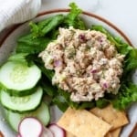 I love this Canned Salmon Salad recipe because like tuna salad, it is so versatile. You can eat it in a sandwich, on a bed of lettuce, with crackers, or alongside veggies like cucumbers or bell peppers.