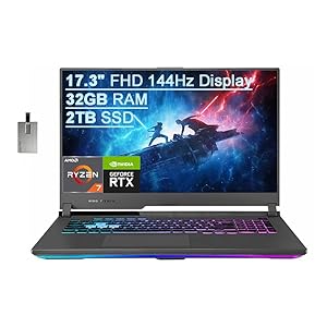 ASUS 2022 New ROG Strix Premium Gaming Laptop: 17.3″ FHD 144Hz IPS Display, AMD Gaming 8-Core Ryzen 9-5900HX, 32GB RAM, 1TB SSD, 4GB GeForce RTX 3050Ti, WiFi-6, Backlit-KYB, USB-C, Win10H, TF
