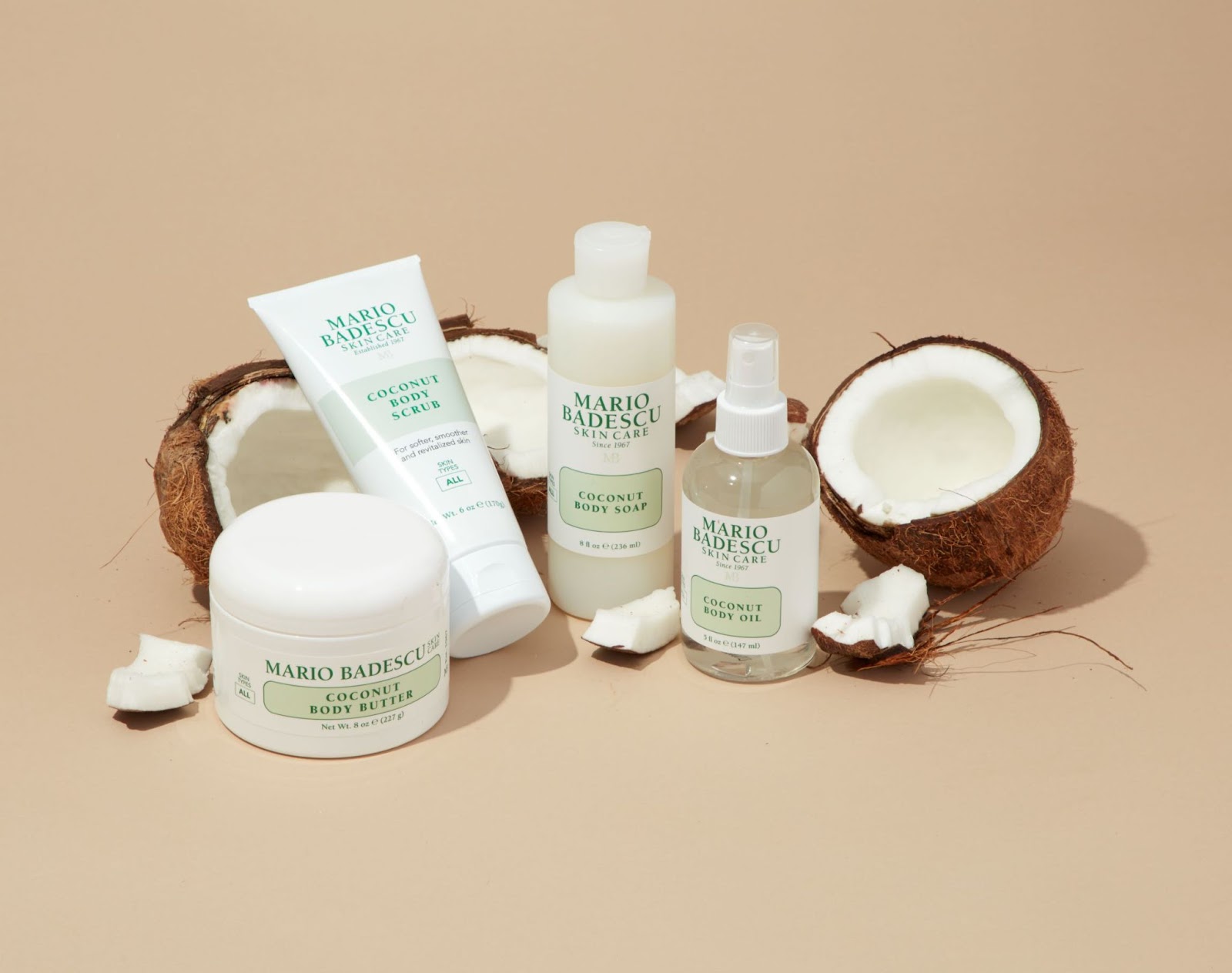 The deep conditioning and hydrating properties of coconut make it very useful to add to bath and body products. For a daily body wash our gentle and nourishing Mario Badescu’s Coconut Body Soap is the perfect addition to your body care routine. The caring formula is enriched with Coconut Extract and Aloe Vera to soothe the skin, Lactobacillus to calm and relieve any dryness and Rice Bran Extract, known for its anti-aging and moisturizing benefits.