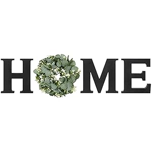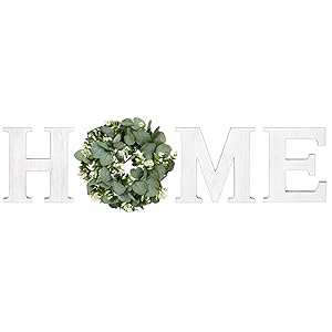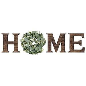 The home wall sign decor comes with high quality paulownia wood letters “H”, “M”, “E” and artificial eucalyptus greenery wreath for “O”. The special design makes the home signs more beautiful and attractive.