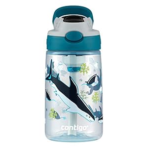 Contigo Aubrey Kids Cleanable Water Bottle with Silicone Straw and Spill-Proof Lid, Dishwasher Safe, 14oz, White Sharks