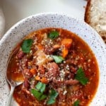 I love to serve this soup with a crusty artisan bread that soaks up all of the delicious flavor and provides a nice crunch with its crust. Top off each bowl with freshly cracked pepper, parmesan cheese, and some parsley and you are good to go!