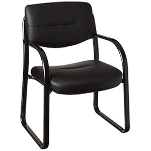 Boss Office Products Leather Sled Base Side Guest Chair, Black