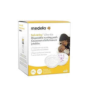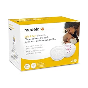 Medela Safe & Dry Ultra Thin Disposable Nursing Pads, 120 Count Breast Pads for Breastfeeding, Leakproof Design, Slender…