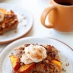 Keywords: peach baked oatmeal, baked peach oatmeal, baked oatmeal with peaches