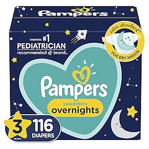 Pampers Swaddlers Overnights are extra absorbent for dry nights