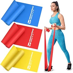 【3 Level Resistance】: Come with 3 color(yellow, red, blue), the different colors have an obviously different tension/strength. 3 versions workout bands for stretching, muscle toning, improving balance, conditioning & rehabbing muscles. 5 ft long by 6 inches wide.$8.49 -