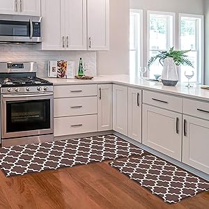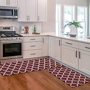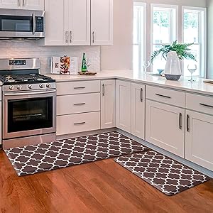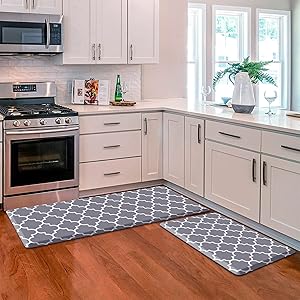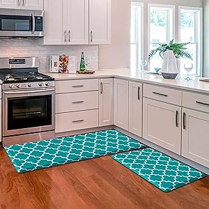ANTI-SLIP & WATER RESISTANT–The top of the anti-fatigue gel mat is designed with an attractive texture while the bottom is made of a non-slip material. The memory foam kitchen floor mat may be used on multiple surfaces (tile, wood, ceramic, marble, etc). [WARNING!!] Open rug fully and place on even, flat, dry floor. Water under rug may result in slippage. Rug must be placed on dry surface during use.$23.00 – $37.99 -