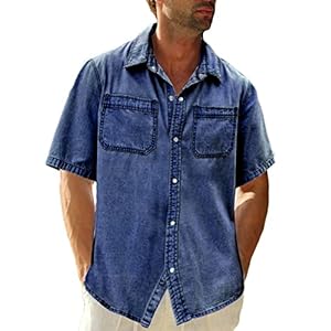 Design: Classic casual button down shirt for men with comfortable jeans fabric, featuring a Spread Collar neck, button up closure, single chest pocket, loose fitting and solid color.$34.99 -