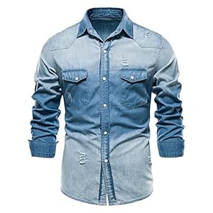 LONGBIDA Mens Denim Shirt Button Down Lo