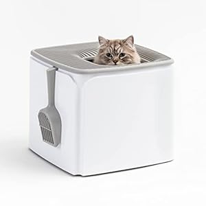 Inner cover with high walls in the top entry cat litter box is the perfect way to prevent litter scatter and contain spraying