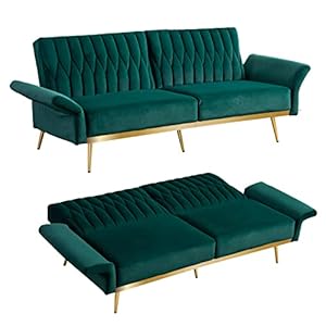 Paddie Velvet Futon Sofa Bed Sleeper Sofa with Adjustable Armrests, Convertible Modern Futon Couch Home Furniture for…
