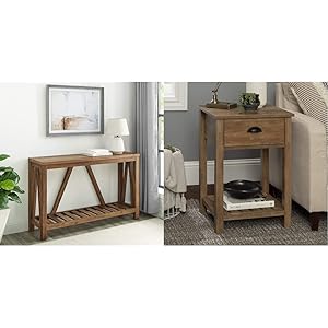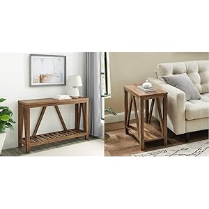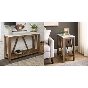 Walker Edison Modern Farmhouse Accent Entryway / Living Room End Table, 52 Inch, Color-Marble and Walnut