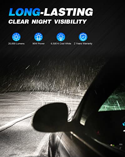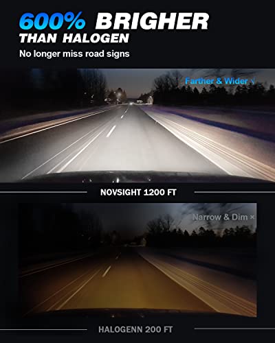 【600% brighter than halogen】NOVSIGHT 9006 LED headlights with 20,000 lumens and a 6500K color temperature, 6 times brighter than halogen, with much greater output provide wider and brighter night visibility.