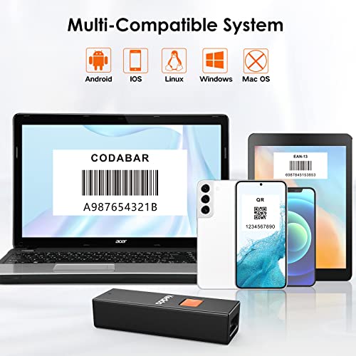 Strong Recognition Ability: Bluetooth barcode scanner with extraordinary performance on scanning most 1D 2D QR barcodes on labels, paper and screen, and can read even deformed, smudged, damaged, fuzzy, reflective barcodes, etc. Code Image Reader reading faster and more accurate, no more frustrating delays trying to adjust the right angle.