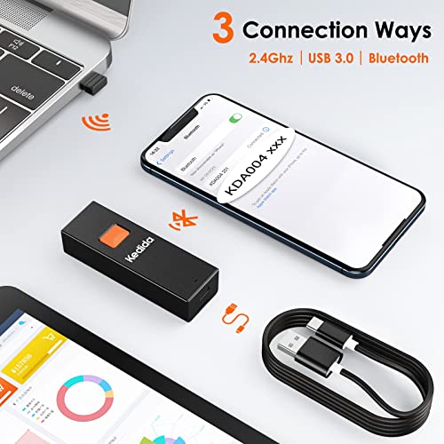 Kedida 2D Bluetooth Barcode Scanner, Portable 3-in-1 Bluetooth & 2.4G Wireless & USB Wired Barcode Scanner 1D 2D QR Code…