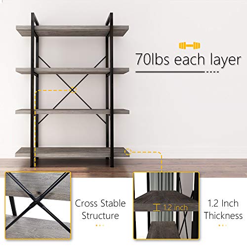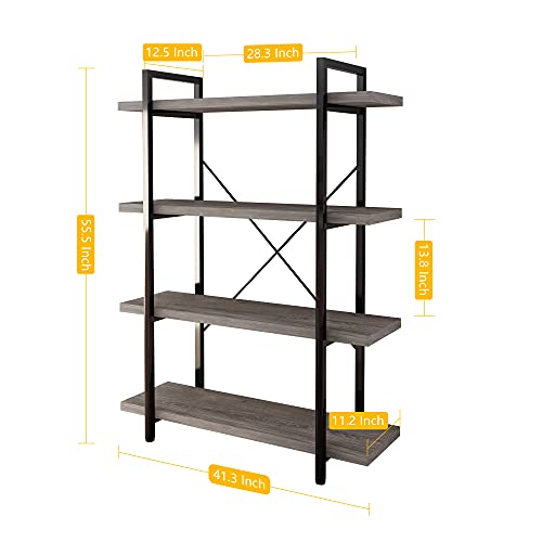 45MinST 4-Tier Vintage Industrial Style Bookcase/Metal and Wood Bookshelf Furniture for Collection, Gray Oak, 3/4/5 Tier…