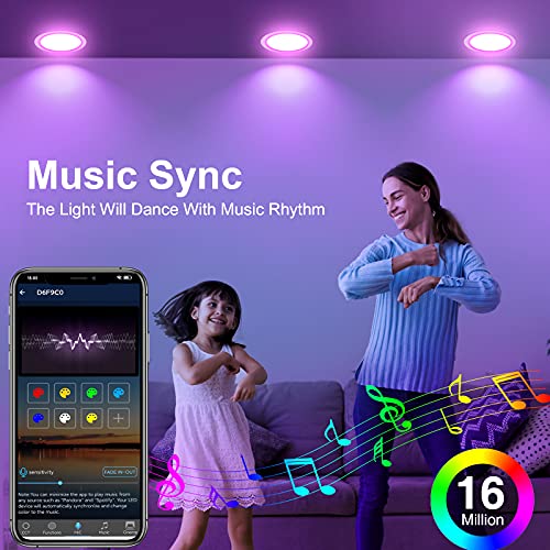 Multi Scenes & Music Sync – Our led smart color changing recessed light works with “Magic Home Pro” APP, you can indulge yourself with various scenes, music & dynamic modes, even customize your own mode. What’s more, the smart lighting will sync and dance to rhythm of music or sound of game which make this ceiling recessed light is definitely an ideal choice for stylish lifestyle.
