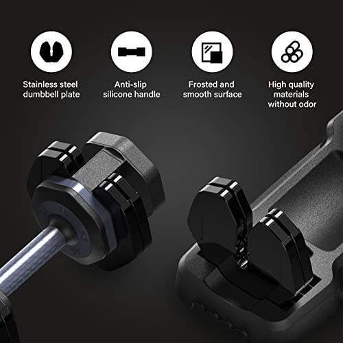 [Anti-slip & Stable]The adjustable weight dumbbells locked core is made of a high-quality steel structure. Our adjustable dumbbells use a durable handle with anti-slip texture, which would provide more safety, so you can enjoy your fitness training. After the adjustable dumbbell leaves the pedestal, it will be fixed, the handle won’t rotate. The dumbbell pieces will not fall off, so they are more stable overall and more accurate for training movement, so as to ensure your safety