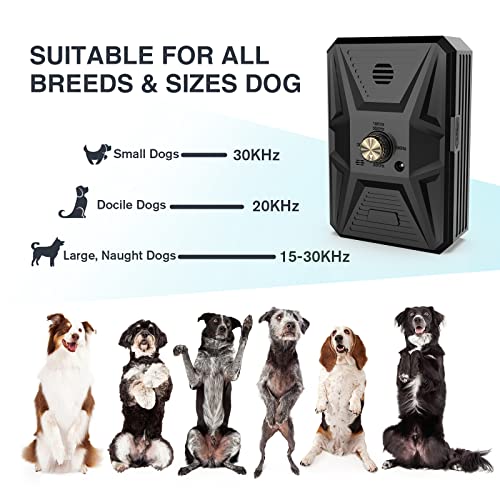 ?【 3 Adjustable Frequencies for All Sizes & Breeds Dogs】 The anti barking device with 3 different frequencies stop different sizes of dogs from barking effectively. 15-30KHz frequency can stop large and naught dogs barking around 15m, 20KHz frequency can stop medium and docile dogs barking around 10m, 30KHz can stop small dogs barking around 5m. This anti barking device with 3 frequency modes, you can change frequency once a week, which is perfect for keeping the best barking control effect.