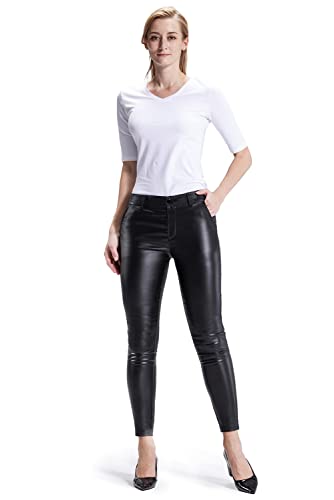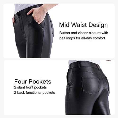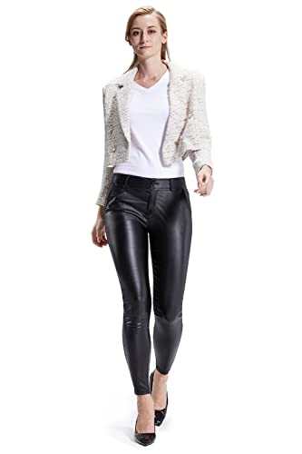 Balleay Art Faux Leather Pants for Women, Skinny Leg Mid Waist Elastic Black Pants Leather Leggings with Pockets