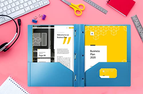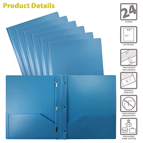 Better Office Products Light Blue Plastic 2 Pocket Folders with Prongs, 24 Pack, Heavyweight, Letter Size Poly Folders…