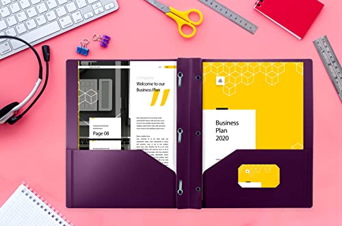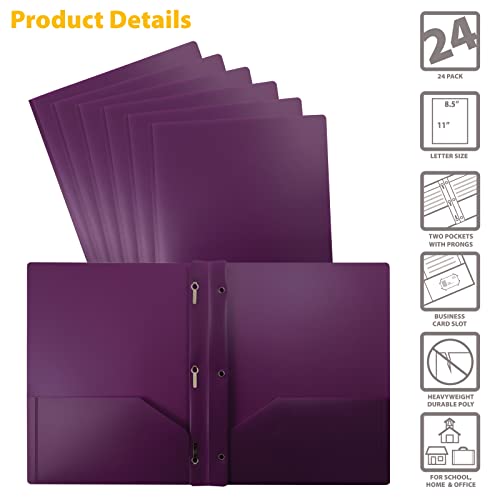 Better Office Products Purple Plastic 2 Pocket Folders with Prongs, Heavyweight, Letter Size Poly Folders, 24 Pack, with…