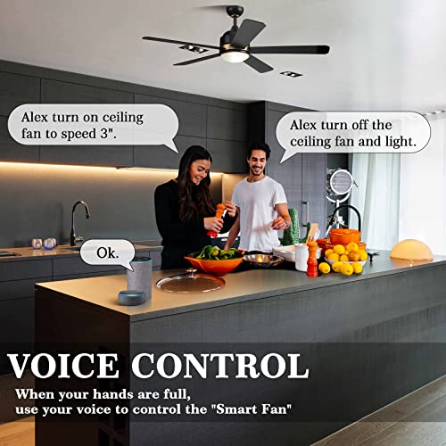 Black Ceiling Fan With Light 5-Blade, 52 Inch Ceiling Fan With Lights APP Control Smart Activated Suitable for Alexa…