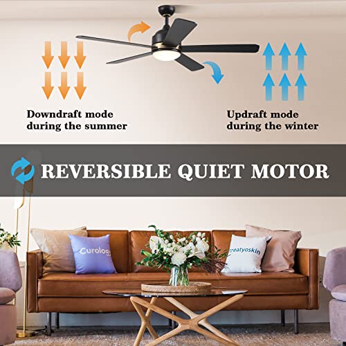 [QUIET REVERSIBLE MOTOR] 5-blade matte black ceiling with light fan delivers ultra-powerful airflow with whisper-quiet performance, Enjoy the cooling without unwanted noise. You can change the direction of the fan from downdraft mode during the summer to updraft mode during the winter.