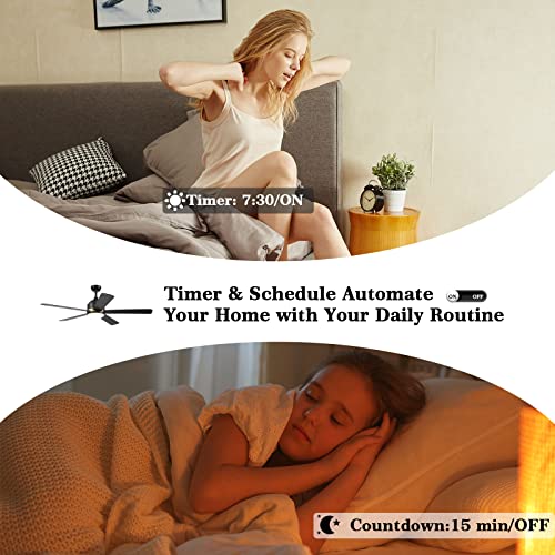 [VOICE ACTIVATED & REMOTE CONTROL FROM ANYWHERE] this smart ceiling fan works with Alexa devices, Google Assistant, Siri Shortcut, and CarroHome App. With a simple voice command, you can remote control your ceiling fan from anywhere, anytime: set the fan speed, turn the light on/off, and schedule functions, all directly on your smart phone.
