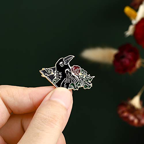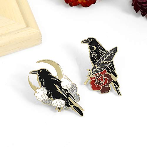 Black Crow Enamel Pins Set Art Rose Moon Lapel Pin Cute Aesthetic Badges for Children Women Backpack Shirt Denim Bag