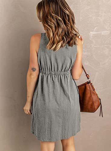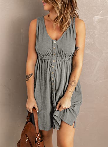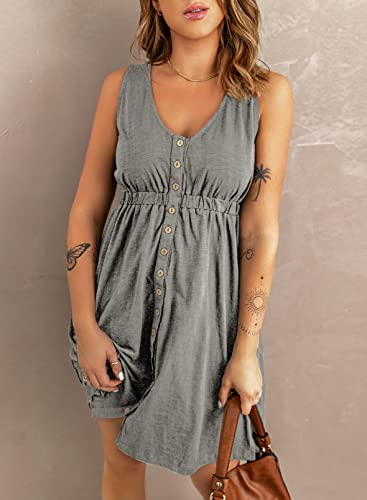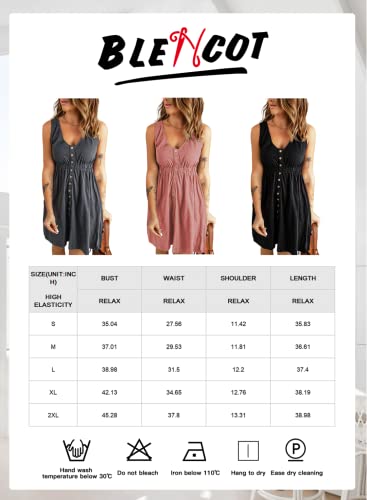 BLENCOT Women’s Casual Sleeveless T-Shirt Dresses Summer V Neck Button Down Swing Short Dress