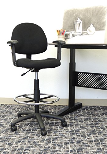 Boss Office Products Ergonomic Works Drafting Chair with Adjustable Arms in Black, 250
