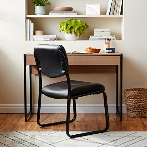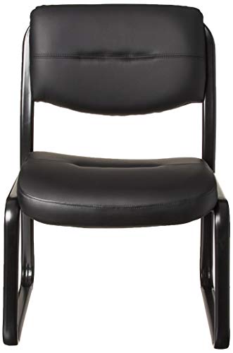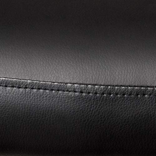 Fully upholstered in Black Leather Plus. Polished tubular steel frame coated with Black scratch resistant finish. Thick contoured cushions for added comfort support. Moves smoothly over hard surface ad plush carpeting. Contoured seat and back provides firm lumbar support.
