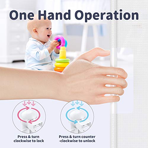 ✅ EASY TO USE – After installation, grasp handle to pull and hook handle onto latches, push the top knob and turn clockwise to lock gate. If you need to open, push and turn counter-clockwise to unlock.