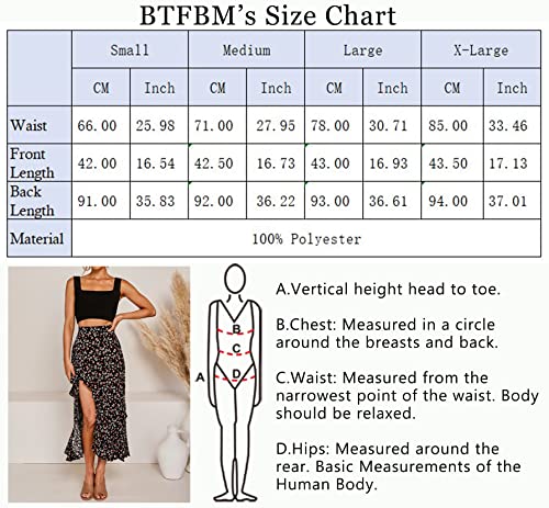 BTFBM Women 2023 Summer Spring Boho Long Skirts Dress Floral Print Elastic Waist Split Ruffle High Low Beach Maxi Skirt