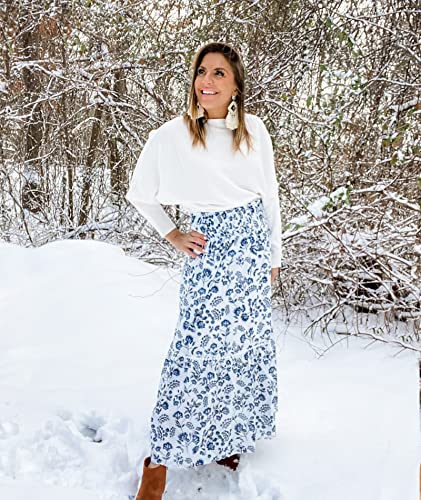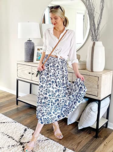 FEATURES: Summer Skirts For Women / Women’s Boho Skirt / Long Skirts For Women / Floral Print All-Over / Elastic High Waist / A-Line Shape / Soft And Lightweight Fabric / Loose Fit / Subtle Small Dot Trimming Throughout / Midi Length / Flowy Ruffled Hemline / Fit For Variety Of Body