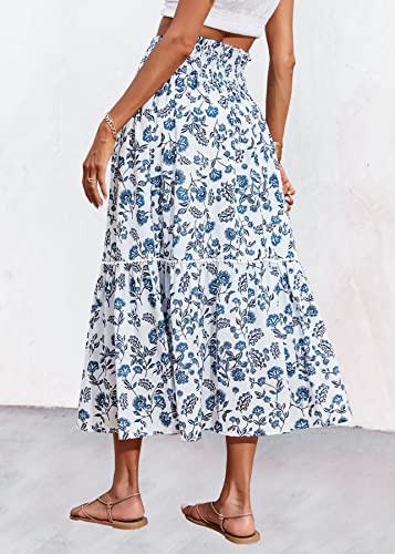 VINTAGE BOHEMIAN SKIRTS – The Women’s Midi Skirts With Beautiful Throughout Floral Print, Gives It A Feeling Of Summer And Youth. The High Waist Skirt With Stretchy Smocked Elastic And Pleated Details, It Shows Off Your Waistline While Bringing You A Comfortable Fit