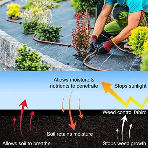 【High Permeability & Superior Light Blocking】Breathable design allows for the application of water over the top of the fabric. High density woven needle punched dual layer perfect for preventing weed growth in heavy foot traffic areas. The liquid will filter down into the soil without damaging or degrading the fabric itself.