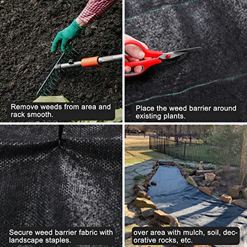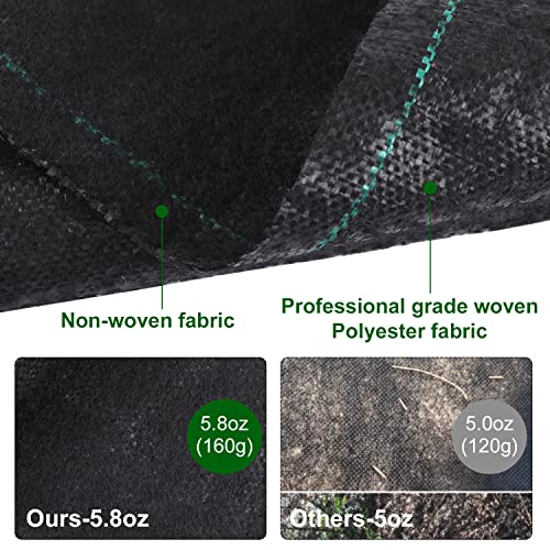 【High Durability & Strength】Weed blocker fabric can exceedingly increase productivity and economic advantage. Save time on buying ordinary fabrics and reinstalling. 5.8oz heavy duty landscape weed barrier fabric, made of tightly woven polypropylene fabric needle that punched with UV-stabilized. Opaque to light, stops weed seeds buried in soil beneath from sprouting.