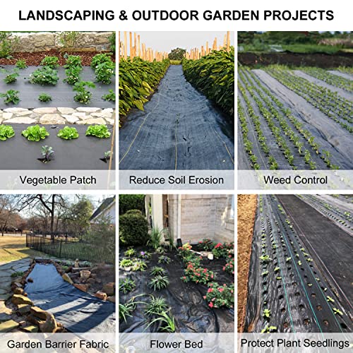 【Various Purposes & Easy to Install】Striped for easy plant alignment. Easy to cut and handle, conform to garden or landscape layout. Our weed barrier landscape fabric is suitable for landscaping or outdoor garden projects, like a soil stabilizer under stones or pavers, rocks, patio and sidewalk underline, drive way and all landscaping or garden weed control needs.