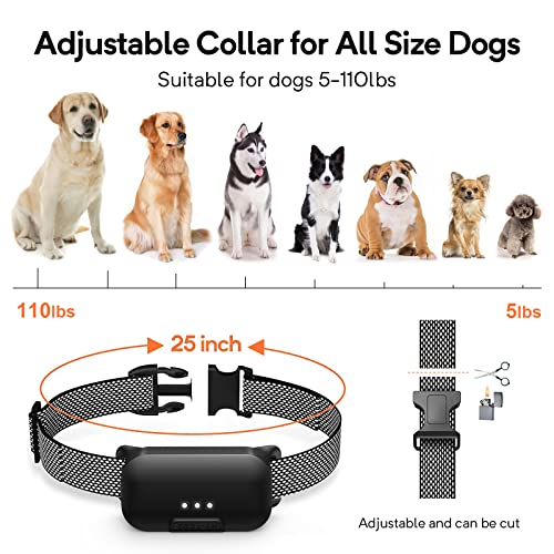 【Adjustable Dog Training Collar Fits All Size Dogs】Our shock collar for large dogs, medium dogs and small dogs with neck sizes from 8 to 25 inches and weight from 5-110 lbs; The adjustable dog training collar strap is made of soft and durable nylon to protect your dog considerately; Thanks to the slender and lightweight receiver design(0.15lbs) and a thinner strap