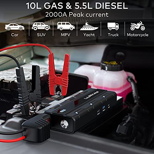 Car Jump Starter – 2000A Jump Box 20000mAh for up to 10L Gas and 5.5L Diesel Engines, 12V Car Battery Charger Jump…