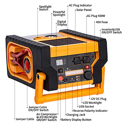 Tyrell Chenergy Car Jump Starter with Air Compressor,400W Inverter Power Station and Solar Panels,Double AC Plug,5V/3.1A…