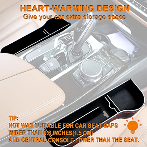 ? Perfect Size Car Storage Organizer- Not suitable for car seat gaps wider than 0.78 inches(2 cm) and central console lower than the seat. The size of the car seat gap organizer is 10.23 x 6.49 x 2.95 inches which is suitable for most vehicles. The cup holder can fit cups up to 2.75 inches in diameter. Just like the size of aluminum Coca-Cola. Please measure the distance between your seat and the console carefully before you purchase.